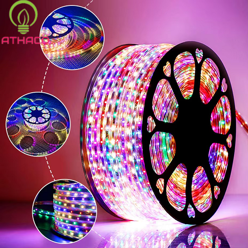 Dây Led nhiều màu 3014 cuộn 100m ánh sáng lung linhDây đèn Led nhiều màu 3014 thiết kế chống nước tuổi thọ caoLed dây 3014 nhiều màu 220v dùng được nguồn đứng và chớp