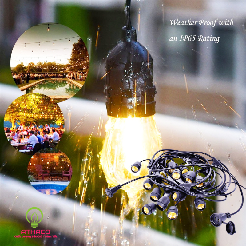 Đèn led dây đui ngoài trời E27 được phân phối bởi Athaco Việt Nam, sản phẩm được sản xuất trong nước với chất liệu cao cấp siêu bền, Với thiết kế đúc liền khối đạt chuẩn IP65 để ngoài trời chống nước thích hợp với với trang trí ngoài trời như không gian các quán cafe, quán ăn, khu vui chơi ngoài trời…