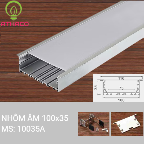 Hiện tại, thanh nhôm LED này có kích thước phủ bì 116mm và kích thước rãnh khoét 100x35mm, cho phép việc lắp đặt âm tường hoặc âm trần dễ dàng mà không gặp quá nhiều khó khăn. Đặc biệt, sản phẩm còn đi kèm phụ kiện tiện ích như đầu bít và bát sắt, đảm bảo quá trình thi công diễn ra nhanh chóng và tiện lợi.