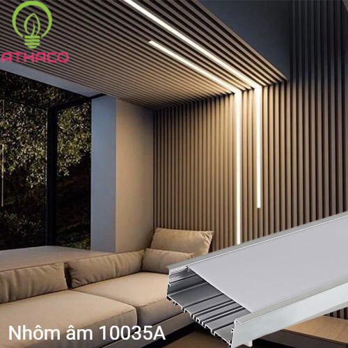 - Ánh sáng dịu nhẹ và đồng đều: Được kết hợp với LED dây 12V/24V/220V chất lượng cao, thanh nhôm âm trần 10035A mang lại ánh sáng đồng đều, mềm mại mà không gây chói mắt.