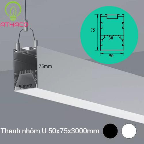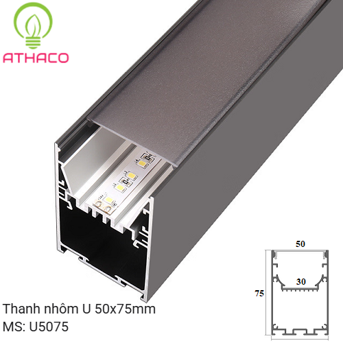 Thanh nhôm chữ U 5075 LED Profile thiết kế để cố định đèn LED dây và LED thanh 12V/24V/220V. Với thiết kế chữ U đặc trưng, thanh nhôm U 5075 không chỉ mang lại khả năng linh hoạt trong việc lắp đặt mà còn góp phần nâng cao giá trị thẩm mỹ cho không gian nội thất. Sản phẩm thanh nhôm định hình LED U 5075 chuyên dụng làm đèn thả trần, gắn nổi trần trong Decor nội thất, được phân phối chính hãng bởi AThaco với mức giá hợp lý, cam kết chất lượng đảm bảo.