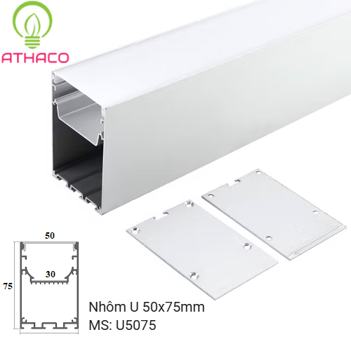 Kích thước tối ưu: Với chiều rộng 50mm và chiều cao 75mm, thanh nhôm chữ U 5075 phù hợp với nhiều loại LED dây và LED thanh 12V, đáp ứng đa dạng nhu cầu chiếu sáng của người dùng.